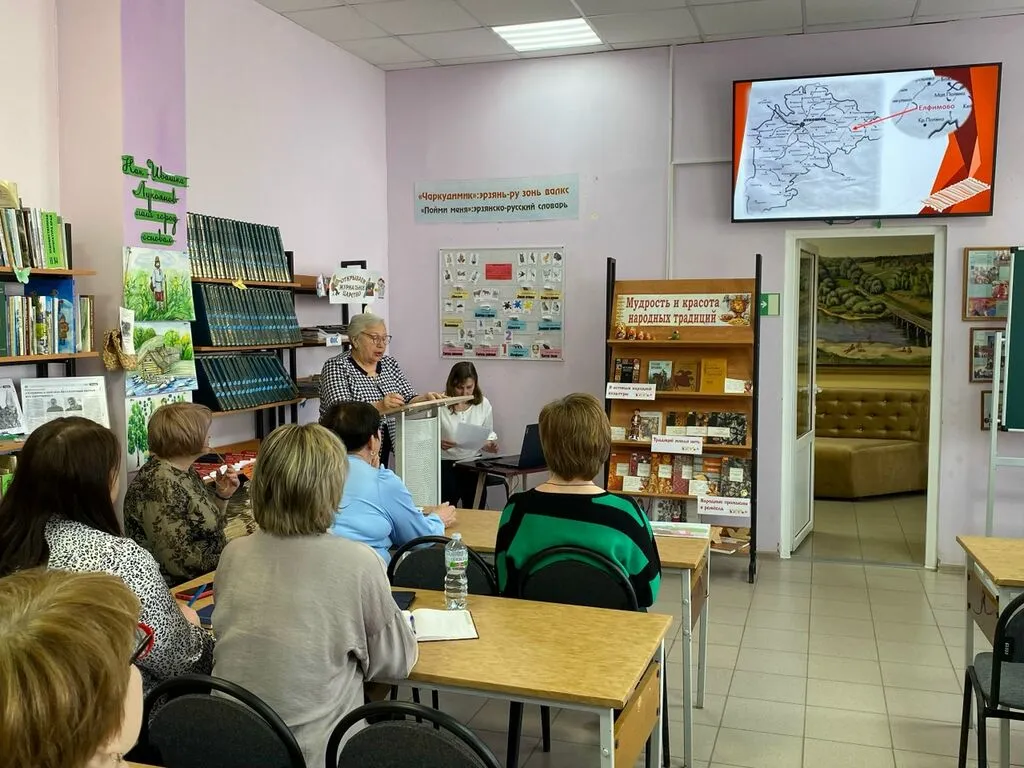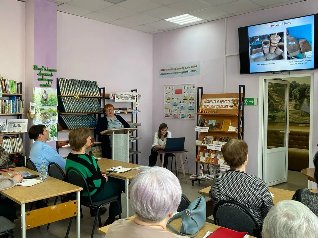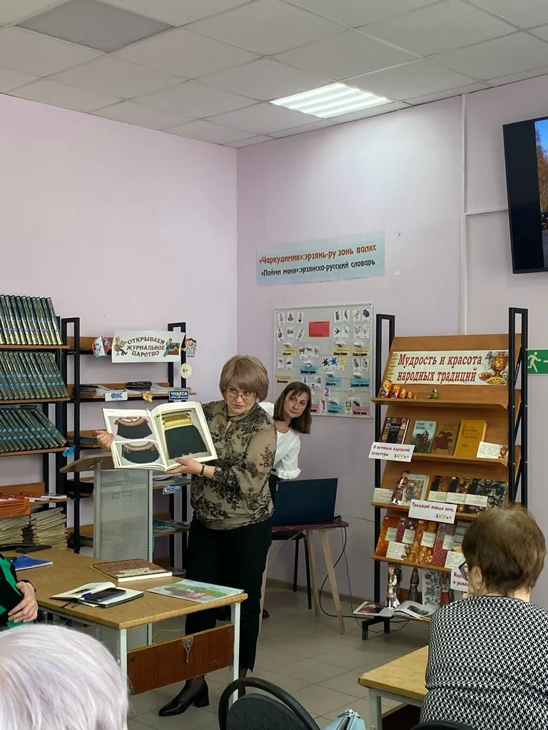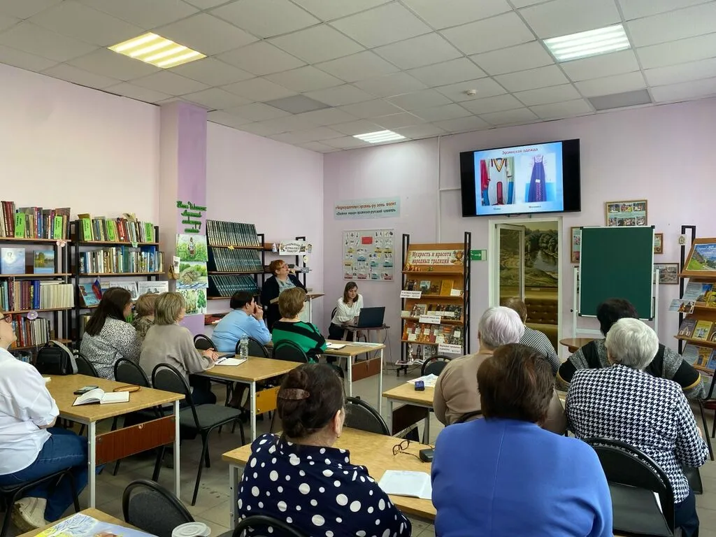 Виртуальную экскурсию в комнату истории и быта эрзян провела М.В. Лазарева, ведущий библиотекарь Чиргушской библиотеки-филиала №36. Присутствующие познакомились с национальной одеждой мордвы, орнаментальными мотивами и техниками эрзянской вышивки, предметами быта, кухонной утварью, ремесленными изделиями, а также с собранными и систематизированными материалами по культуре народа эрзя, эрзянской литературой и периодическими изданиями.